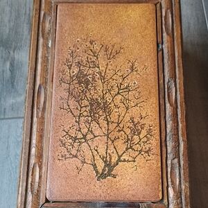 Beautiful vintage wooden jewelry box featuring an intricate tree design. Perfect for storing your treasures.