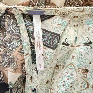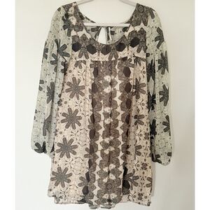 Free People Brown Cream Boho Sheer Shift Dress Chiffon Peasant Sleeves Sz S