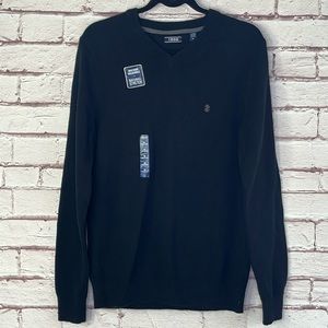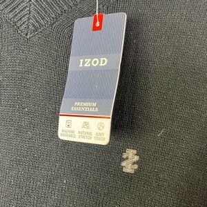 Izod Ribbed Knit V Neck Pullover Sweater NWT. Black with embroidered logo. Stretchy and soft. Great basic piece.