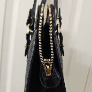 Vintage black leather Dooney shoulder bag with gold hardware. Perfect for any occasion, this bag combines elegance and functionality. Very clean interior. Please see all photos for condition and signs of wear.