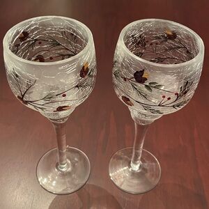 Candleholders packaged in original sturdy brown boxes. Only opened for pictures. Never been used. Painted with pine theme and some frosting. Ideal for festive decor.