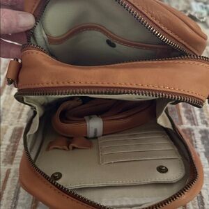 All leather. Multiple compartments.