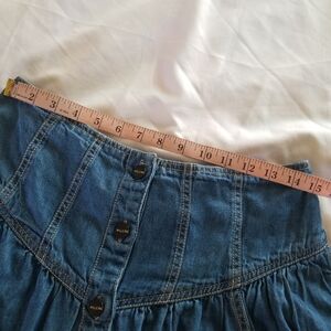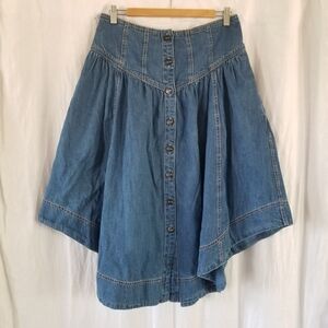 ▪︎Description: In excellent preowned condition, chic blue denim skirt by Pilcro. Features button-up front and stylish design. Gives cottagecore, farmhouse, boho, hipster, cowgirl vibes.