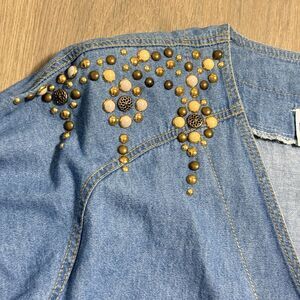 Bingo Bingo Top Women 14 Denim Western Retro Vintage Embellished Beaded 90s USA
