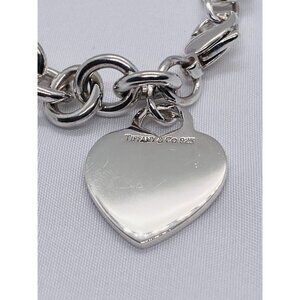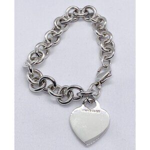 Tiffany & Co Sterling Silver Blank Heart Tag Charm Bracelet 7.75"