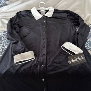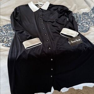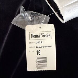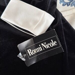 Ronni Nicole Black stretchy velvet Dress new with Contrasting White satin Collar