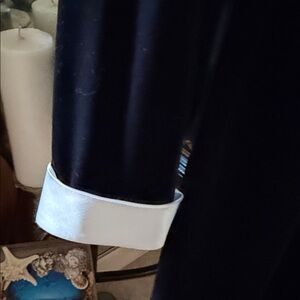 Chic Ronni Nicole dress in black with a bold satin white collar and cuffs eleven glass black buttons with rhinestones in the center down the front Ideal for stylish events.