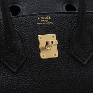 Hermes Herms Birkin 25 Handbag, Togo Black, Champagne Gold Hardware, K Stamp