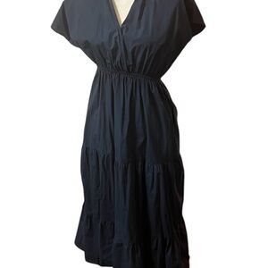 Embrace casual elegance with this blue maxi sundress, featuring a tiered skirt and ruffled details. The v-neckline and dolman cap sleeves add a touch of sophistication, making it perfect for relaxed outings. Pit to Pit 21”, Length 47