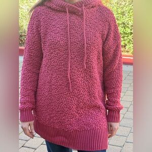 Soft brown jumpsuit with hood. Comfortable and stylish.