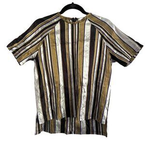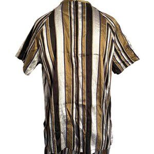 Nikki Chasin Striped Short Sleeve Silk Pant Suit - Small