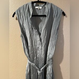 Unbelievably gorgeous sleeveless dress with a shimmering olive finish and tie for framing. Ideal for elegant events.