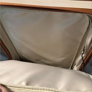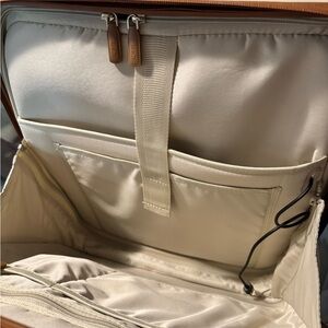 Chic Bric's suitcase in cream and tan. Ideal for stylish travel.