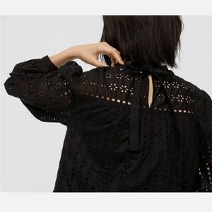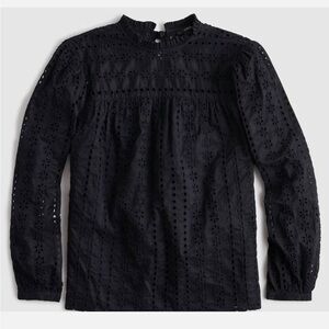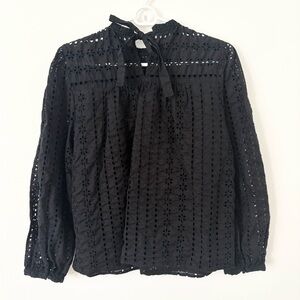 J Crew Black Tie-Back Top in Ditsy Eyelet Long Sleeve Lined Size Medium