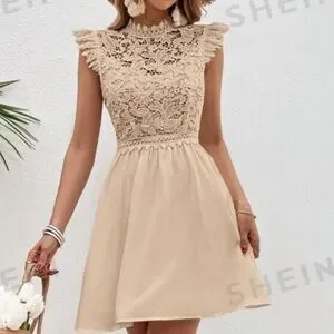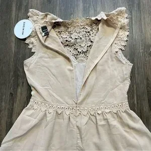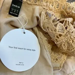 NWT SHEIN Tan Short Sleeves Lace Front Flowy Sun Dress Size S