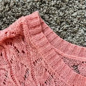 Sfera Pink Lace, woven style long sleeve sweater with back cutout detail