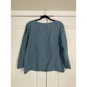 Meetra Linen Long Sleeve Top Womens Medium Blue Breathable Coastal Natural