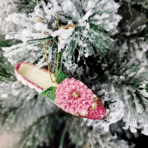 Porcelain Miniature Victorian Glitter Red Pink Christmas Shoes Heels Ornaments