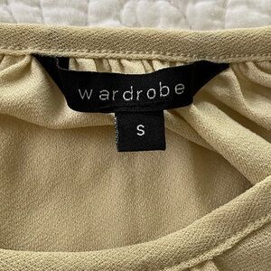 Wardrobe Crew Neck Peplum Flutter Sleeve Beige Top Size Small
