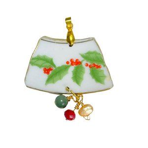 Holly Broken China Artisan Pendant w/ Pearls & Coral Berries & Bows Collection
