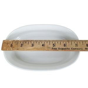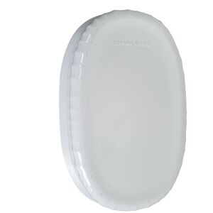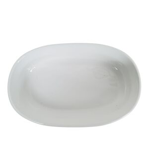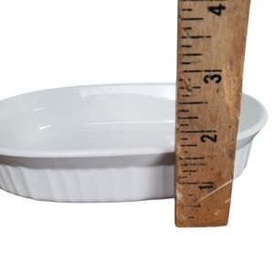 Sleek white ceramic dish by Corningware. Ideal for baking and serving.