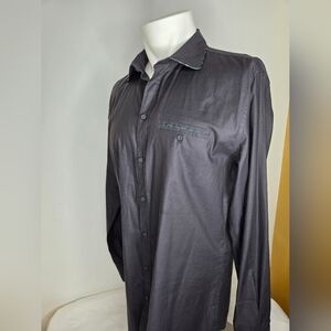 Dolce & Gabbana Size 42 -16 1/2 Black And Green Silk Trim Button-Down Shirt