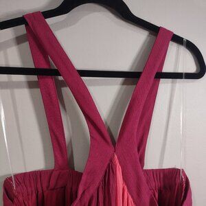 This maxi dress shows off a sexy halter neck and bold colorblock print (plus pockets!). Halter neck. Sleeveless. Covered elastic at the back. Pockets. Woven crinkle fabric. Lined. No closure, pull-over style. Size: 14/16 Condition: Pre-owned good condition. Neckline was repaired, see last photos for detail. Repair only visible on interior. No other visible flaws. Material:100% Rayon