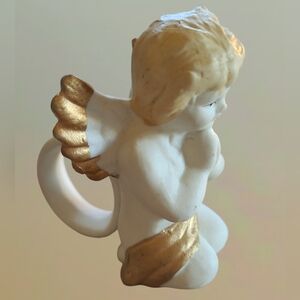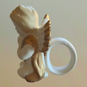 BEAUTIFUL VINTAGE PORCELAIN IVORY GOLD TRIMMED BISQUE PRAYING ANGEL NAPKIN HOLDER HAND PAINTED ~ MEASURE 3.5" H X 2.25" WIDE AT THE WING SPAN