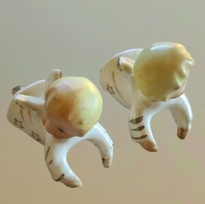 VINTAGE LOT OF 2 PORCELAIN WITH GOLD TRIM TILSO BOY AND GIRL ANGEL CANDLE HUGGERS ~ JAPAN