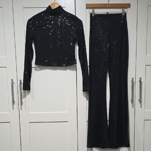 Chic black dress with striking red lip designs. Long sleeves. Ideal for evening wear.Size S. New but tag was removed