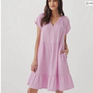 Pact Coastal 100% Organic Cotton Coastal Gauze Throw and Go Pink Mini Dress S