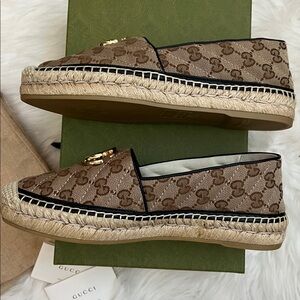 💯% Auth Gucci Women's GG Supreme Espadrille Flat 38