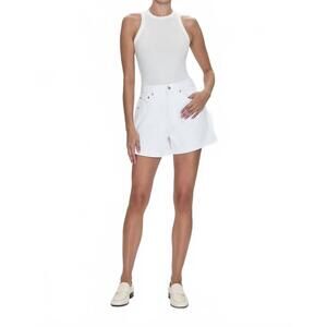 Introducing the Saige High-rise Shorts by PISTOLA, crafted from rigid, non-stretch cotton denim in Polished White for a timeless look. These high-waisted shorts feature a solid pattern, convenient pockets, and a sleek zip closure, making them a stylish choice for any summer occasion. With a clean finish hem, they maintain a polished aesthetic perfect for vacation or Thanksgiving gatherings. Care for them easily with machine wash and tumble dry instructions, ensuring they remain a lasting staple in your wardrobe.