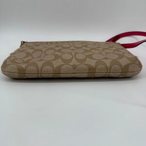 Keywords: Coach, crossbody bag, signature, khaki, pink, handbag, purse, F51065, designer bag, adjustable strap, zip closure, canvas bag, women's fashion, new with tags
