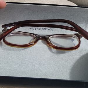 Stylish Warby Parker glasses in a rich brown color. Perfect for a sophisticated look.