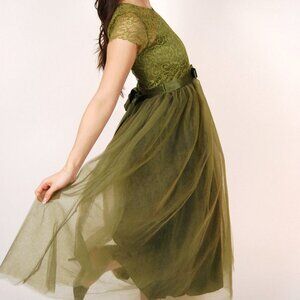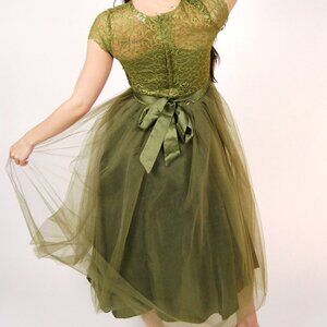 Vintage Fairy Dress (S) moss green y2k ball gown small xs chiffon fairycore prom