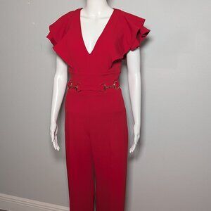 Fashion Nova Red Ruffle Sleeve Jumpsuit – Size Medium