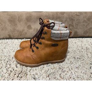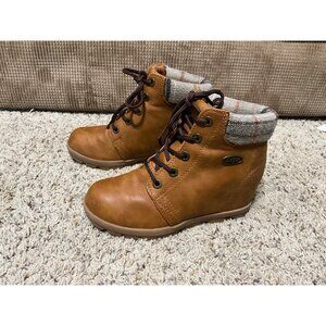 Lugz Womens Brown Ankle Boots With Plaid Collar & Wedge Heel Size 6 Faux Leather