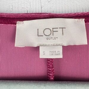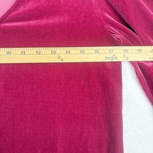 Chic fuchsia velvet blouse by LOFT. Features a V-neck and long sleeves. Perfect for stylish outings.