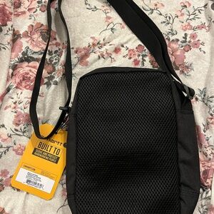 Sturdy black crossbody bag with rain defender. Spacious main compartment and secure pockets. Perfect for everyday use.