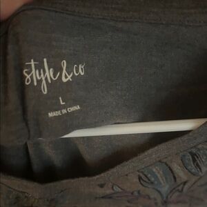 Style & Co. Gray and Blue Embroidered Short Sleeve Top
