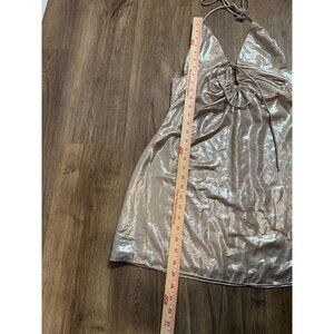 HOUSE OF CB Lucilla Beige Shimmer Mini Dress Mini Dress Large Metallic Shine