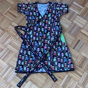 Vibrant midi dress with intricate embellishments. Features multicolor patterns and textures. Perfect for standout style.