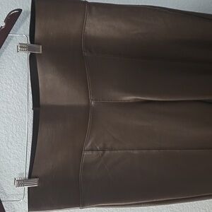 NWT HUE Chocolate Brown Vegan Leather Cropped Flared Leggings Sz XL.