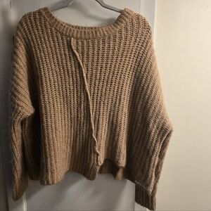 Zara Knit Alpaca Women's Oversized Tan Brown Asymmetrical Pullover Sweater