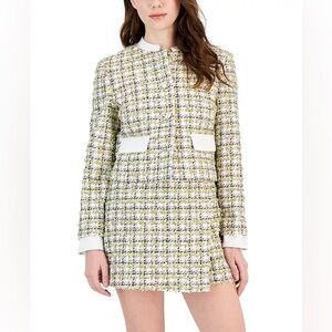 Timeless tweed instantly adds polish to this stand collar jacket from Avec Les Filles. Pair it with the matching skirt for an effortlessly chic look or with jeans and a T-shirt to dress up a casual day.