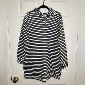 Beyond Yoga 'Live Out Loud' Black/White Striped Hoodie Dress - Women's Large