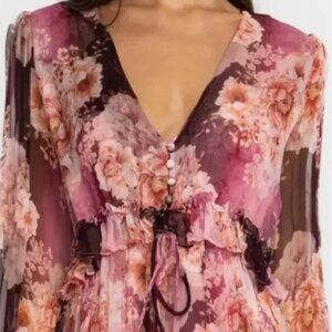 Johnny Was Carina Silk Floral Ruffled Tiered Maxi Dress with Slip NWT $445