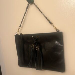 Gorgeous little clutch with so much detail and the quality of thus brand is excellent. Tassels detail on the front with gold-tone hardware through the bag including shoulder strap which is removable .
