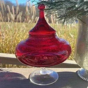 Beautiful glass holiday dish. Would look beautiful on a table with fresh greens.